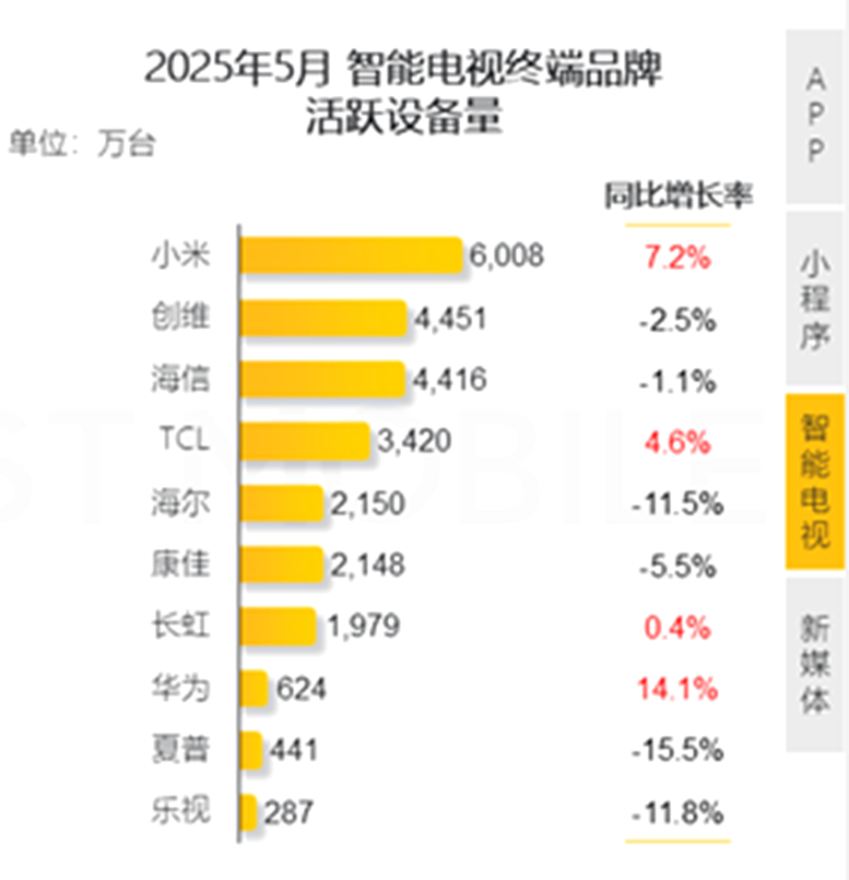 值得一提的是,小米的领先优势具有显著的长尾效应,早在2024年12月,小米电视凭借其卓越的性能和出色的用户体验脱颖而出,月活跃设备量高达5804.1万台,占据了智能电视市场20.65%的份额。
